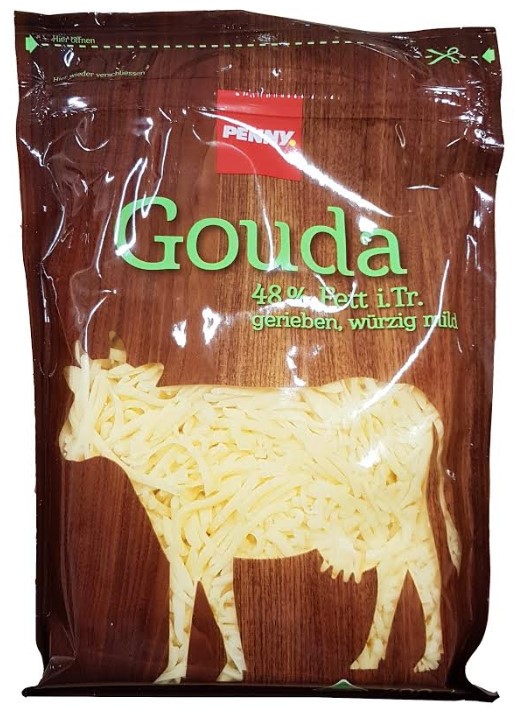 Artikel: Penny Gouda 48% Fett i. Tr., gerieben, würzig mild