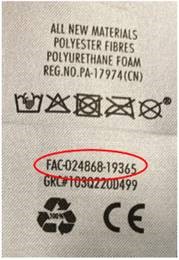 Die Chargencodes finden sich auf dem angenähten Ettikett