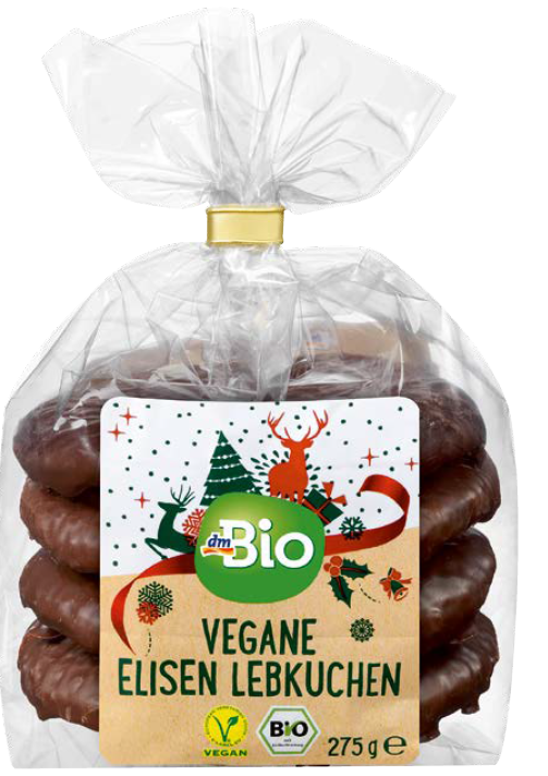 dm-drogerie markt informiert über den Rückruf des Artikels „dmBio Vegane Elisen Lebkuchen, 275 g“ mit dem Mindesthaltbarkeitsdatum (MHD) 04.04.21 und den Losnummern L775 oder L7758.