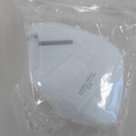 Beschreibung: Einweg-Partikelhalbflächenfiltermaske zum Schutz vor Partikeln und Aerosolen, gekennzeichnet mit KN95 und FFP2. Das Produkt ist seitlich mit „KN95“ geprägt.