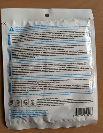 Masken die keinerlei Aufdruck zu Hersteller, Modell etc. haben, sind solchen Dokumenten nur sehr schwer oder gar nicht zuzuordnen. Solche Masken sollten nicht gekauft oder benutzt werden!