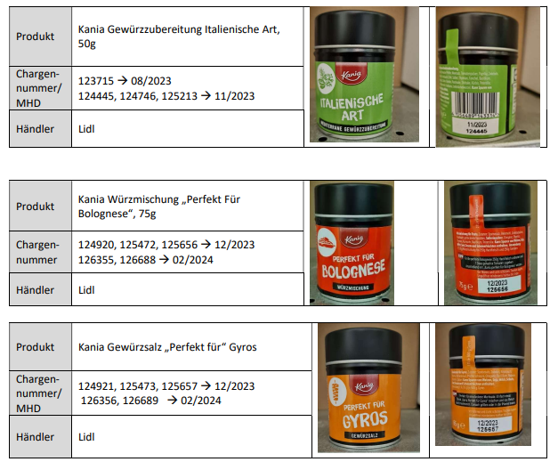 UPDATE 25.09.2021 – Leider gab es viele falsche Angaben zu Chargen und Produkten. Bitte überprüfen sie alle vorhandenen Gewürze unbedingt erneut anhand der folgenden Übersichtsliste.