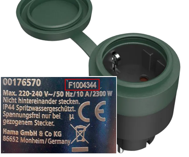 Die Hama GmbH informiert über den Rückruf bestimmter WiFi-Außensteckdosen mit der Chargenkennzeichnung F1004344 und der Artikelnummer 176570. Wie das Unternehmen mitteilt, wurden vereinzelt Risse am Gehäuse festgestellt. Bei einer Nutzung im Freien unter feuchten Bedingungen kann dies ein Sicherheitsrisiko in Form eines elektrischen Schlages darstellen.
