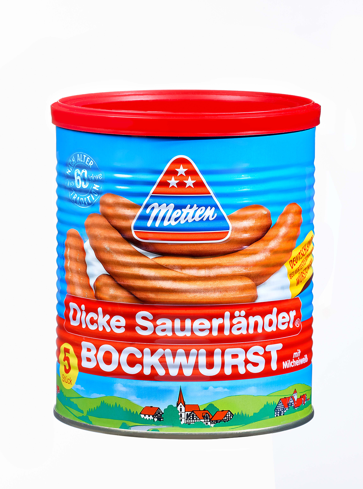 Die Metten Fleischwaren GmbH & Co. KG ruft den Artikel „Dicke Sauerländer“ Bockwurst in der 5x80g-Dose mit dem Mindesthaltbarkeitsdatum (MHD) 25.08.23 und der Chargennummer L-2228008 mit den Uhrzeiten von 5:15 bis 5:25 Uhr zurück.