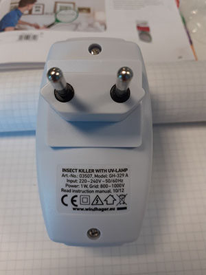 Rapex-Meldung: Stromschlag- und Brandgefahr durch UV Insektenschutz Stecker von Windhager