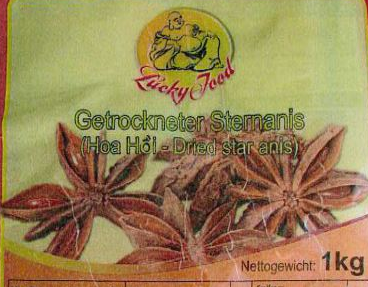 Die Tinh Son Handel GmbH informiert über den Rückruf von „Getrockneter Sternanis“ in der 1Kg Packung und dem Mindesthaltbarkeitsdatum 20.12.2023. Wie mitgeteilt wird, wurde Anthrachinon nachgewiesen. Anthrachinon ist ein in der EU nicht zur Verwendung zugelassenes Pflanzenschutzmittel.
