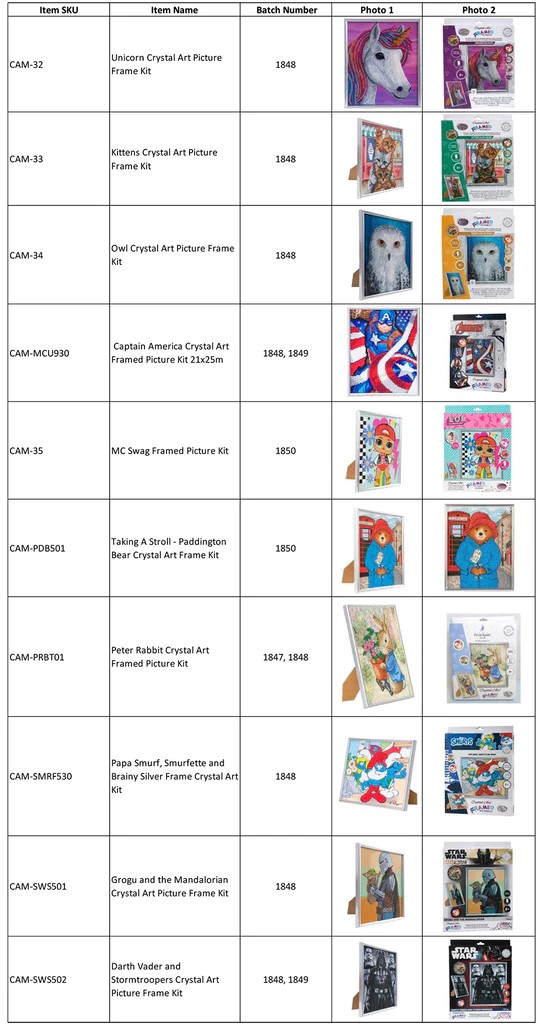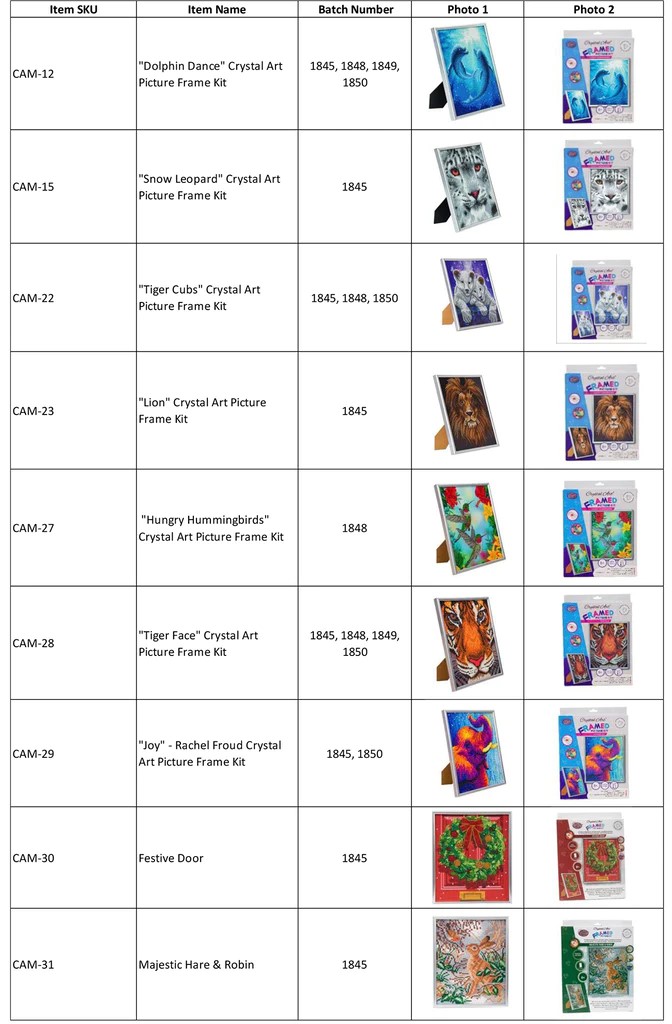 Rückruf: Gesundheitsgefahr – Craft Buddy ruft verschiedene Crystal Art Kreativsets zurück