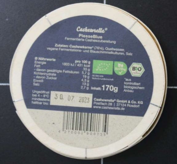 Rückruf: Gesundheitsgefahr – Cashewrella ruft PlesseBlue vegane Käsealternative zurück