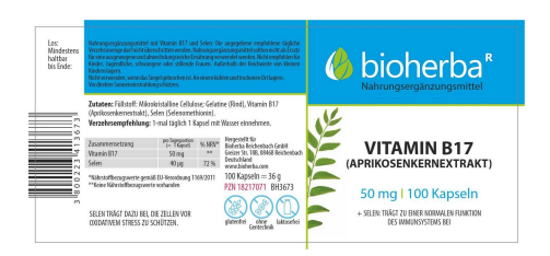 Die Bioherba Reichenbach GmbH informiert über den Rückruf des Artikels „Vitamin B17 (Aprikosenkernextrakt)“ Kapseln aufgrund eines erhöhten Gehalts an Cyanid in Vitamin B17 (Aprikosenkernextrakt).