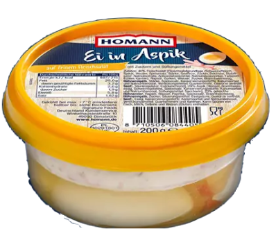 Signature Foods Deutschland GmbH informiert über den Rückruf des Artikels Homann Ei in Aspik 200g mit dem MHD 25.06.2025. Wie das Unternehmen mitteilt, ist das auf dem Produkt angegebene Mindesthaltbarkeitsdatum (Aufdruck Becher) falsch. Es wurde versehentlich das Jahr 2025 und nicht das Jahr 2024 angegeben.