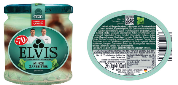 Die ELVIS EIS, Elvis Bogicevic e.K. informiert über den Rückruf von 4 Chargen des Eisartikels ELVIS Minze Zartbitter im 400ml Glas. Wie das Unternehmen mitteilt, Produktsicherheit wurde aufgrund eines menschlichen Fehlers das Elvis Eis im Glas der Sorte Minze Zartbitter für 2 Produktionstage nicht korrekt etikettiert.