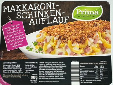 Die Prima Menü Vertriebs GmbH & Co. KG ruft verschiedene Tiefkühl-Aufläufe in der 400/450-Gramm-Packung über verschiedene Handelswege zurück. Betroffen ist ausschließlich Ware mit folgenden Mindesthaltbarkeitsdaten und Chargennummern.