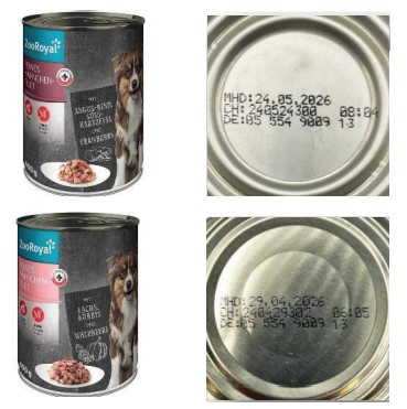 The Petfood Company GmbH informiert über den Rückruf von zwei Sorten Alleinfuttermittel für Hunde der Marke ZooRoyal. Wie das Unternehmen mitteilt, wurden in einzelnen Dosen der genannten Artikel mit den angegebenen Mindesthaltbarkeitsdaten Fremdkörper (Glasscherben) festgestellt.