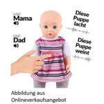 Das EU Schnellwarnsystem Safety Gate (vormals RAPEX) informiert über Sicherheitsmängel bei den unten abgebildeten sprechenden kinderplay Puppenmodellen KP4840 (oder KP4840N) sowie KP4839, die nicht den Anforderungen der Spielzeugrichtlinie Richtlinie 2009/48/EG entsprechen.