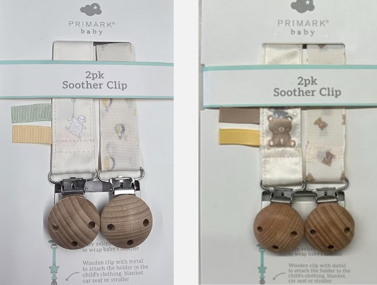 Der Textildiscounter Primark informiert über den Rückruf der Schnullerclips Baby Bear und Balloon, jeweils im 2er Pack. Wie das Unternehmen dürftig mitteilt, wurde ein Sicherheitsproblem festgestellt. Die Produkte entsprechen nicht vollständig den für Schnullerhalter geltenden Sicherheitsnormen. Eine nähere Beschreibung des Problems bleibt Primark schuldig