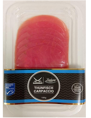 Der Lieferant Sicily Food informiert über den Rückruf des Artikels Sansibar Deluxe Thunfisch Carpaccio in der 100g Packung und den Verbrauchsdaten 27.12.2025 28.12.2025 29.12.2025. Wie das Unternehmen mitteilt, wurden in dem betroffenen Produkt Listerien (Listeria monocytogenes) nachgewiesen.