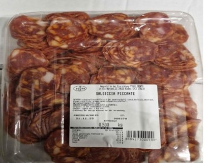 Die Andronaco GmbH & Co. KG informiert über den Rückruf des Wurstartikels Salsiccia Piccante Affettata in der 500g Packung und mehreren Mindesthaltbarkeitsdaten aufgrund von Listerien (Listeria monocytogenes). Der Vertrieb erfolgte bundesweit.