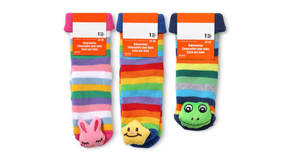 Rückruf: Erstickungsgefahr – Migros ruft Babysocken mit aufgenähter Rassel zurück