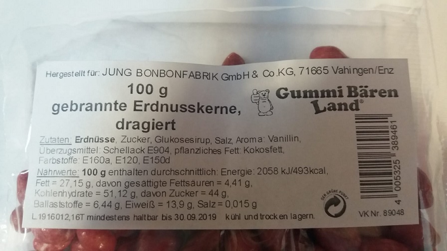 Rückruf: Fremdkörper – „Gummi Bären Land“ ruft gebrannte Erdnusskerne zurück