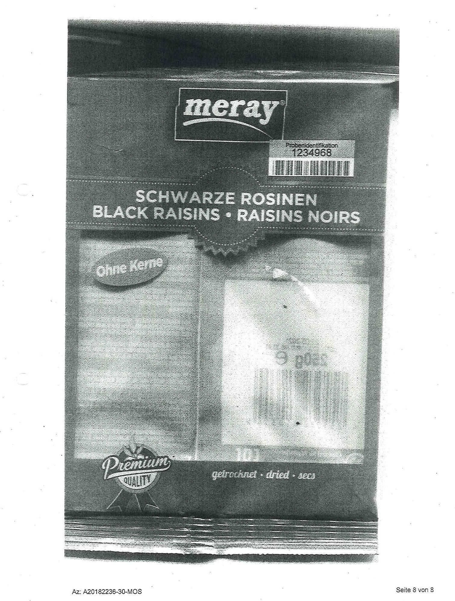 Rückruf: Gesundheitsgefahr – Fungizidrückstände in „meray-Schwarze Rosinen“
