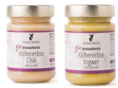 Rückruf Erweiterung: Ethylenoxid in Sanchon Brotaufstrich „Kichererbse Chili“ und „Kichererbse Ingwer“