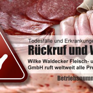 UPDATE vom 11.10.2019 – Weitere Handelsmarke hinzugefügt Die Wilke Waldecker Fleisch- und Wurstwaren GmbH ruft weltweit alle hergestellten Produkte zurück. Nach Auskunft des nordhessischen Landkreises Waldeck-Frankenberg wurden Listerien in Pizzasalami und einem Brühwursterzeugnis der Wilke Waldecker Fleisch- und Wurstwaren...